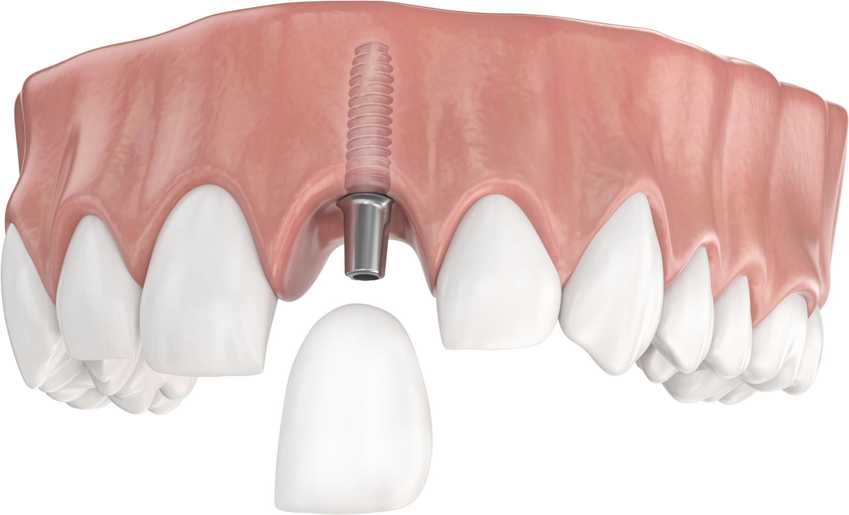 Имплантат прочно фиксируется в кости и позволяет сразу установить временную коронку. Таким образом, вы выйдете из клиники с восстановленным зубным рядом.